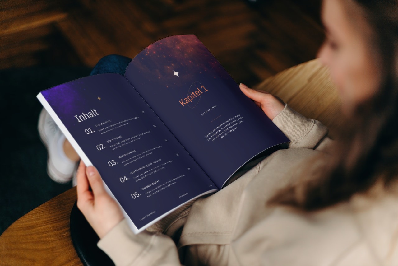 Jedes Designelement des Workbooks – von den lebhaften Farben bis hin zur übersichtlichen Struktur – ist sorgfältig gewählt, um die Markenbotschaft von Business Galaxy zu unterstreichen und die Nutzer zu begeistern. Das Workbook ist somit nicht nur ein praktisches Werkzeug, sondern auch ein wesentlicher Bestandteil des gesamten Branding-Erlebnisses, das sowohl inhaltlich als auch visuell beeindruckt und die Gründer auf ihrer Reise unterstützt.