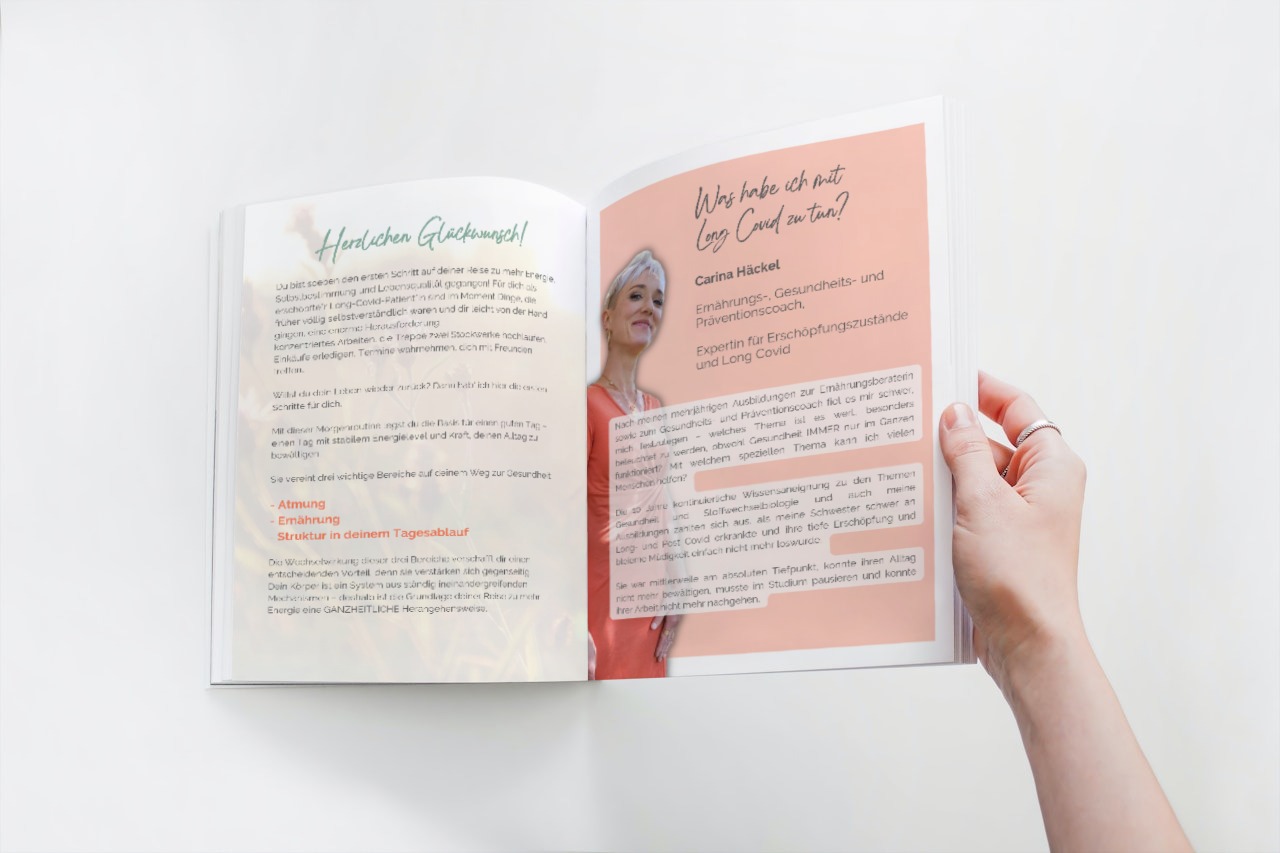 Im Kurs von Carina ist auch ein Workbook enthalten, das von mir gestaltet wurde und sich nahtlos in den gesamten Markenauftritt einfügt.